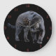 Os relógios de parede preta de Jaguar Diablo são para amantes de jaguar, pessoas de gatos, apoiadores de natureza selvagem, donos de carros Jaguar, decoradores de interiores e pessoas que gostam de grandes felinos. Jaguar Diablo é a arte original do superrealismo Steamy Raimon.