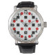 Relógio Preto Quadrado Vermelho Bolinhas Branco BG
