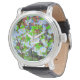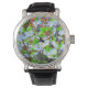 Uma cereja nova floresce, iluminando a face deste relógio bonito. Pintura digital a partir de uma fotografia.