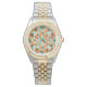 Este relógio feminino tem um design escandinavo de flores e folhas em vários tons de laranja e lacre.