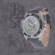 A timepiece for men who lead with quiet conviction. This stainless steel watch features Psalm 46:10 in centered black typography. Be Still and Know is printed on a matte dial and paired with a black leather strap. It’s a wearable reminder of grounded faith and spiritual clarity.