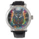 Esta fantasia psicodélica, design de coruja hippie, é uma obrigação para qualquer um que ama a única e atraente visão. A trabalho de arte apresenta uma coruja colorida num galho com cores psicodélicas. Este relógio é perfeito para quem ama corujas, a estética hippy, ou qualquer coisa que esteja um pouco fora do comum. Seria um presente de excelente para um amigo, membro da família, ou mesmo para você.