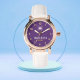 personalized watch, purple dial, gold watch, white leather strap, elegant wristwatch, monogram gift, luxury accessory, custom initials, timeless design, stylish fashion