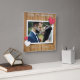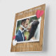 Celebre o seu primeiro aniversário de casamento com este belo relógio de parede personalizado! Com um fundo de madeira rústica, corações românticos e a sua foto personalizada no centro, este design combina charme e calor para uma lembrança atemporal. A elegante escrita "1º Aniversário de Casamento" (Great Vibes) combina perfeitamente com o texto moderno e limpo (Quicksand) para destacar os seus nomes e data especial.