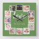Relógio Quadrado 12 Colagem de Fotos Verde Personalizado