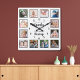 Modern black and white 12 photo collage wall clock with 'The love a family is life’s greatest blessings' quote typography in the middle.