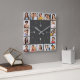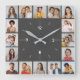 Relógio Quadrado 16 Cinzas de Colagem de Fotos e Branco