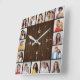 Relógio Quadrado 16 Colagem de Fotos Cerca de Madeira Marrom Escuro