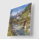 Relógio Quadrado 1 Peter 5:7 igreja perto da montanha