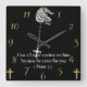 Relógio Quadrado 1 Peter 5:7 segurando a cruz
