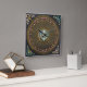 Apresentando a coleção "Sacred Symbols 3D" pelo C.7 Design Studio. Aqui você encontrará relógios de parede personalizados, com um "OM" tibetano redondo, Mantra Mandala, com um Sagrado Script tibetano. Mandala é um círculo que é um dispositivo para a meditação tântrica. Trata-se de um auxílio visual à concentração e à meditação introversiva que leva ao alcance de percepções e à ativação de forças que culminam em forças sobrenaturais "Siddhi". O Mandala é a representação gráfica deste processo. Não é apenas teórico, mas também prático como um esquema operacional que envolve um plano claro para a realização prática do processo em si mesmo. Torna-se assim um instrumento (Yantra). A palavra Mãe (म ण् ड ल) é uma palavra sânscrita que significa "círculo". Nas tradições religiosas budistas e hindus a arte sagrada costuma assumir a forma de mandala. A forma básica da maioria dos mandalas hindus e budistas é um quadrado com quatro portões contendo um círculo com um ponto central. Cada portão tem a forma de um T. Os mandalas exibem frequentemente o equilíbrio radial. Estes mandalas, diagramas concêntricos, têm significado espiritual e ritual tanto no Budismo como no Hinduísmo. O termo é de origem hindu e aparece no Rig Veda como o nome das seções da obra, mas também é usado em outras religiões indianas, particularmente no budismo. No ramo tibetano do Budismo de Vajrayana, mandalas foram desenvolvidas em pintura de areia. São também uma parte fundamental das práticas de meditação de anuttarayoga tantra.Em várias tradições espirituais, mandalas podem ser empregadas para focar a atenção de aspirantes e adeptos, como ferramenta de ensino espiritual, para estabelecer um espaço sagrado e como ajuda à meditação e indução de transe. De acordo com o psicólogo David Fontana, sua natureza simbólica pode ajudar a "acessar níveis progressivamente mais profundos do inconsciente, ajudando em última análise o meditador a experimentar um senso místico de unidade com a unidade final da qual surge o cosmos em todas as suas múltiplas formas". O psicanalista Carl Jung viu a mandala como "uma representação do eu inconsciente", e acreditou que as suas pinturas de mandalas lhe permitiam identificar distúrbios emocionais e trabalhar no sentido da integridade na personalidade. Em uso comum, a mandala tornou-se um termo genérico para qualquer plano, gráfico ou padrão geométrico que represente o cosmo metafísica ou simbolicamente, um microcosmo do universo da perspectiva humana. Existem muitos tipos e variedades de Mandalas, dependendo da natureza da divindade central. O padrão mais clássico de Mandalas é o Buda Dhyani. Esta Ronda Mantra Mandala retrata Buda Mandala. O Mandala representa um "palácio de pureza", uma esfera mágica desfeita de obstáculos espirituais e purificada. O quadrado do "palácio sagrado" propriamente dito é usado em múltiplos círculos de chama, Vajra, oito séculos (aparece apenas em divindades ferozes) lotus, depois o quadrado interior para alcançar a divindade do Mandala. Um mantra é um som, sílaba, palavra ou grupo de palavras que é considerado capaz de "criar a transformação espiritual". Seu uso e tipo variam segundo a escola e a filosofia associadas ao mantra. Para os autores das escrituras hindus dos upanishads, a sílaba Om, que constitui um mantra, representa o homem, a cabeça-de-deus, além de toda a criação. Kūkai sugere que todos os sons são a voz do Buda Dharmakaya. ou seja, como no pensamento hindu upanishadic e iogic, esses sons são manifestações da realidade máxima, no sentido de um simbolismo sonoro que postula que os sons vocais do mantra têm um significado inerente independente da compreensão da pessoa que os expõe. No entanto, essa compreensão do que um mantra pode simbolizar ou como pode funcionar difere nas várias tradições e também depende do contexto em que é escrito ou soado. Em alguns casos, há múltiplas camadas de simbolismo associadas a cada som, muitas das quais específicas a escolas de pensamento particulares. Por exemplo, veja a sílaba: Om que é central tanto para as tradições hindus quanto para as budistas.
