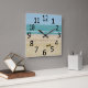 A pintura de uma cena de praia de oceano, céu, e ondas suaves, com a mensagem, Vida é excelente na praia, e um par de óculos de sol vermelhos e amarelos, é impressa em relógios de parede personalizados. Este relógio tem grandes números negros. Obrigado por comprar em CherylsArt no Zazzle.