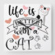 Relógio Quadrado A vida é melhor com um slogan de citação do Cat