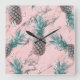 Relógio Quadrado Abacaxi e Mármaco Rosa Giro Moderno Tropical