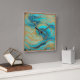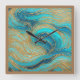 Relógio Quadrado Abstrato Art Pour Aqua Blua Dourado Wall Clock