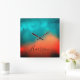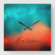 Relógio Quadrado Abstrato Art Script Name Blue Teal Orange Square