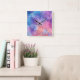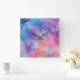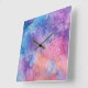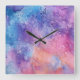 Relógio Quadrado Abstrato Azul Roxo Mistura Nuvens Aquarela