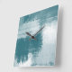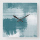 Relógio Quadrado Abstrato Branco Teal Brushstrokes