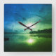 Relógio Quadrado Abstrato do nascer do Sol da Manhã Verde Azul no C