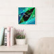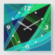 Relógio Quadrado Abstrato, geométrico, verde, azul, preto