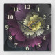 Relógio Quadrado Abstrato Modern Purpur Khaki Cinza Flor Fractal