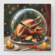 Relógio Quadrado Ação de Graças e peru de Natal sob cúpula de vidro