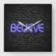 Relógio Quadrado Acredite no texto em néon acendendo no tijolo