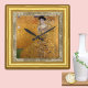 Relógio de Parede Vintage com a famosa obra de arte "Adele - a Dama em Ouro" de Gustav Klimt emoldurado em moldura dourada com fundo de tecido de tela rústica decorativa antiga.