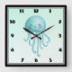Relógio Quadrado Água-viva branca e feliz azul-verde