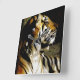 Um tigre olhando para o lado como se estivesse olhando para ou procurando algo. Eu tirei esta foto no Zoológico de Los Angeles.