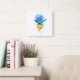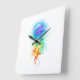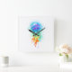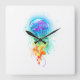 Água-viva grande, iridescente, desenhada artisticamente, brilhante, com longos tentáculos em branco, pintada sobre fundo de aquarela multicolorido. Água-viva arco-íris.