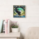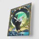 Relógio Quadrado Águia Empoleirada em Rocha com Fundo Luar