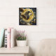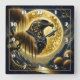 Relógio Quadrado Águia Empoleirada Sob Lua Ouro