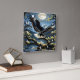 Relógio Quadrado Águia Espalha Asas em Ramificação Sob Céu Noturno