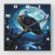 Relógio Quadrado Águia Majestosa Empolgada Sob Céu Luar