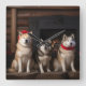 Uma cena encantadora captura a essência do conforto e do espírito de feriado como companheiros peludos enfeitados em Papai Noel se reúnem em torno de uma lareira estaladiça. O calor que emana da lareira cria uma atmosfera fria para estes adoráveis caninos, enquanto que as meias festivas se penduram no fundo, melhorando o ambiente feliz. A ilustração encantadora retrata uma imagem eterno de companheirismo e alegria festiva, perfeita para celebrar o feriado com um toque de charme canino.