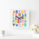 Relógio Quadrado Alfabeto Geométrico Retro