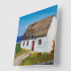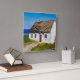Casa branca a olhar para o oceano. Um velho Croft de pedra com um telhado e uma porta vermelha acolhendo. Presente perfeito para o aquecimento da casa. Seria um presente adorável para dar para a cozinha de alguém. O original foi pintado com acrílicas em estilo impressionista. Por Charlotte Foster em RivvyArts