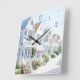 Relógio Quadrado Algodão Costeiro de Pastel de Verão com Aquarela