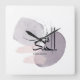 The composition highlights fluid black lettering set against a soft abstract background of muted neutral tones and subtle watercolor textures. The open space and gentle contrast create a sense of visual balance and quiet sophistication.