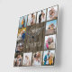 Relógio fotográfico com citação feliz e 12 de suas fotos favoritas de família e amigos. O modelo de foto está configurado para você criar sua própria colagem de fotos no estilo de grade para enquadrar a citação que diz "amar a vida com você". O design é escrito em uma escrita neat e tipografia de fontes magras com um fundo de efeito de madeira de casca de país rústico. Adicione suas fotos trabalhando no sentido horário a partir do topo esquerdo e suas fotos serão exibidas automaticamente no formato quadrado / instagram. Um belo presente fotográfico para casais, amigos e família.