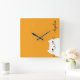 Relógio Quadrado Amarelo branco engraçado do monograma do gato dos