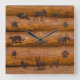 Um relógio perfeito para a cabana ou apenas para aquele olhar rústico. Animais florestais e impressões de pés em ferro enferrujado em toros.