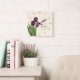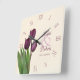 Três ricas flores roxas de tulipa roxas e burlões escuras em um fundo creme com folhas verdes, e nomes personalizáveis e data para um presente de aniversário, particularmente um casamento rubi. O relógio tem números correspondentes em algarismos romanos cor de burgundy. Você também pode substituir a imagem de fundo por uma fotografia do casal feliz.