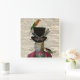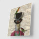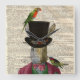 Vintage dictionary page with print of a vintage rabbit wearing a colorful suit. The vintage animal illustration also has colorful vintage birds. The background is an original antique dictionary page.