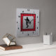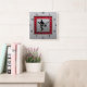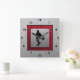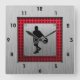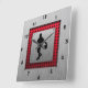 Relógio Quadrado Aparência de metal escovado, basquete; vermelho