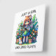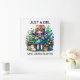Cute, relógio para qualquer garota que ama plantas. Gráfico ai em um estilo de jogo de pixel. Garota segurando água rodeada de muitas plantas.