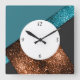 Relógio Quadrado Aqua blue bronze brilha design com números