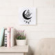 A bold crescent moon anchors the design, surrounded by a delicate mandala pattern and hanging lanterns and stars. The monochrome palette on a dark textured background gives the piece a luxurious, gallery-style feel that fits perfectly in contemporary interiors.