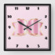 Relógio Quadrado Arco de vidro rosa com um gemstone central